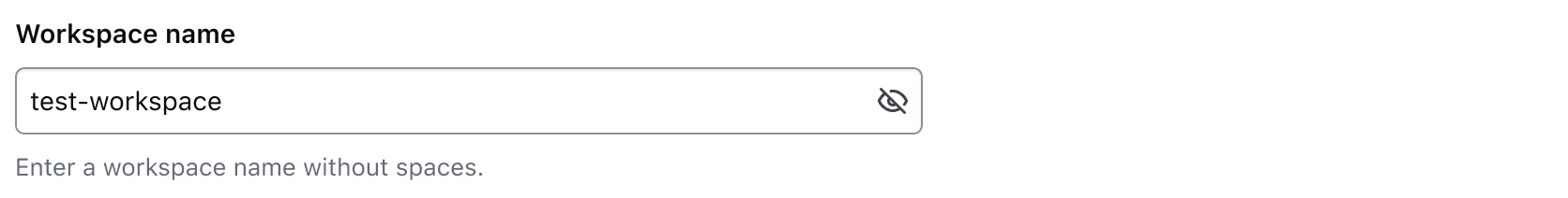 A workspace name input with the text "work" entered. If the character count is showing current length, it reads "4 characters entered". If maximum length, it reads "21 characters remaining". If minimum length, it reads "1 character remaining".